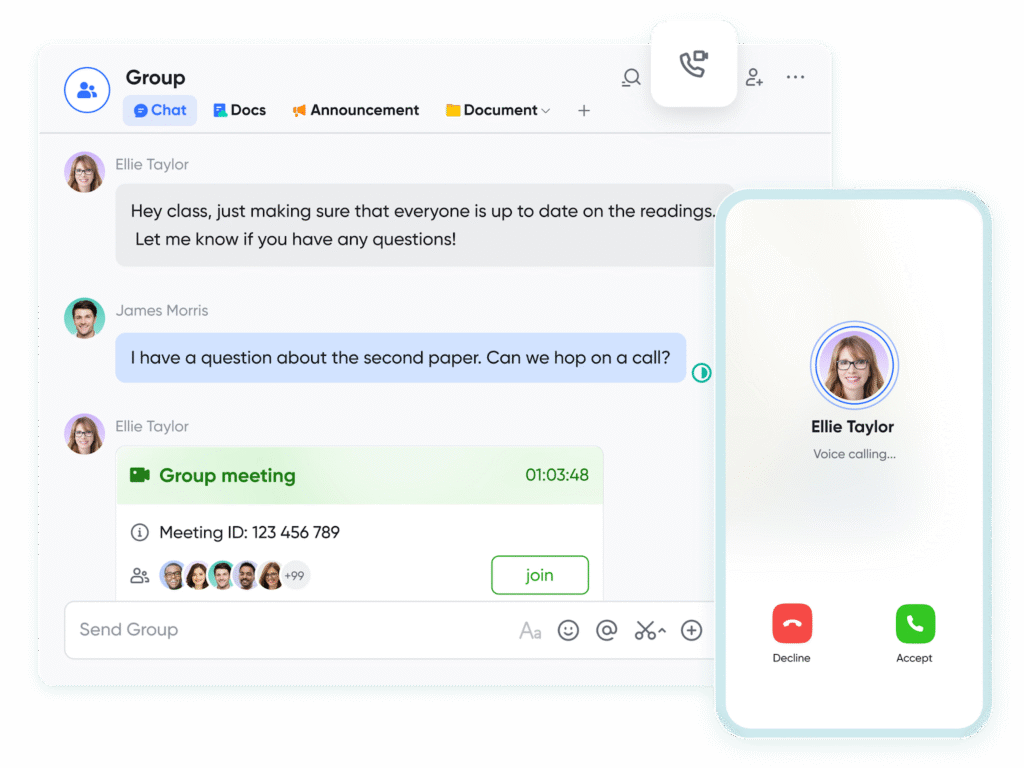 When you’re doing projects with lots of data, you need people with different jobs to work together – like data engineers, analysts, people who make sure you’re following the rules, and bosses. If everyone just sends emails back and forth, things get confusing fast. Lark Messenger helps everyone chat quickly and in an orderly way, so you can keep up with how fast data changes.